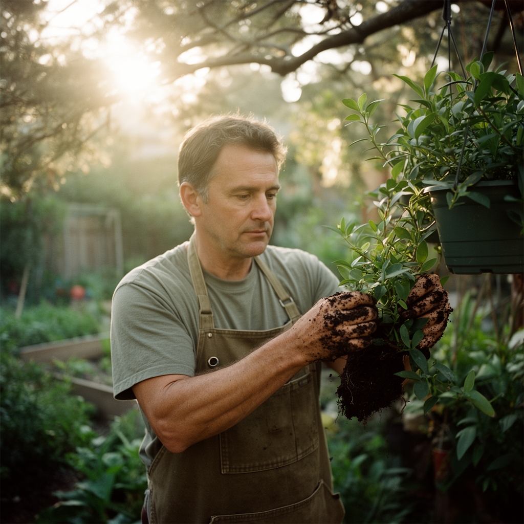 Drill three 1/4-inch drainage holes in plastic or ceramic baskets lacking perforations. Line basket interiors with coconut coir or sphagnum moss to retain substrate while permitting water egress. Fill with pre-moistened substrate mix to 1 inch below rim. Create central planting well measuring twice the root ball diameter.